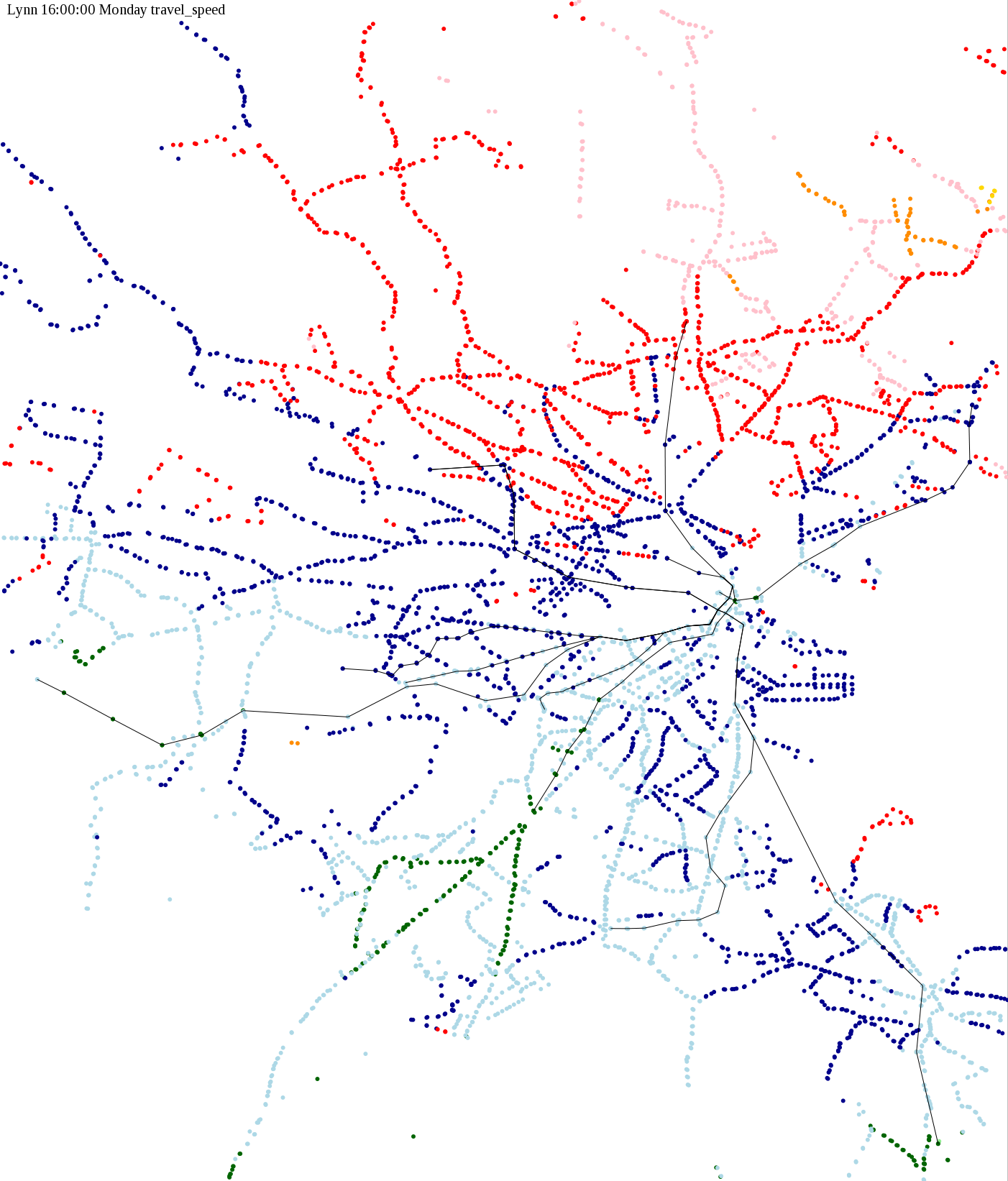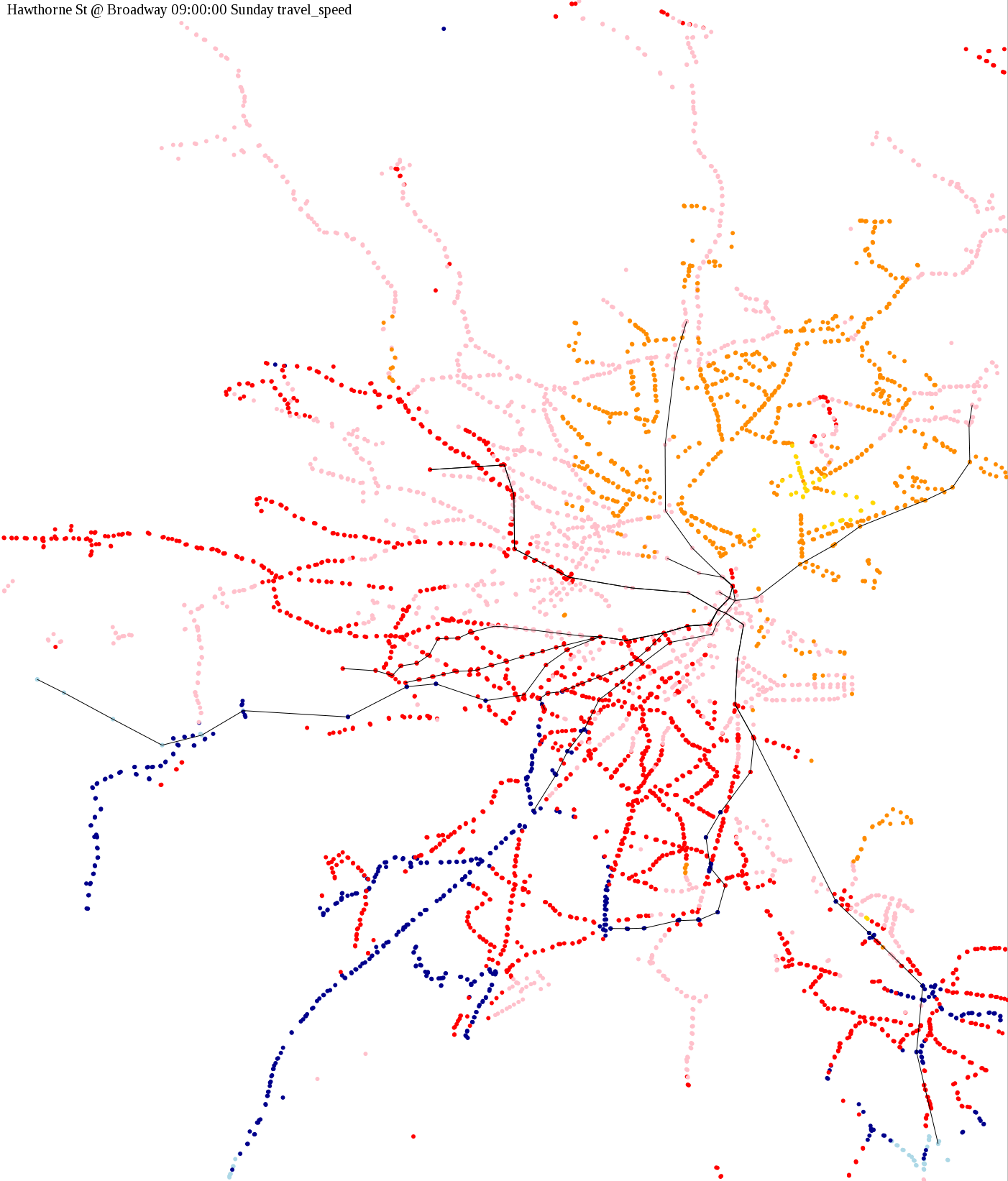 | Color | Travel Time (h:mm) | Travel Speed |